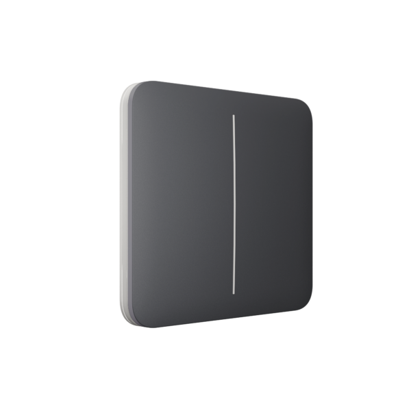 Die Farbvariante Graphit steht für Eleganz und Understatement. Mit ihrer matten, hochwertigen Oberfläche verleiht die Ajax SoloButton 2‑Gang Abdeckung jedem Raum eine stilvolle Note. Das horizontale 2‑Gang-Design ermöglicht eine intuitive Steuerung von zwei Funktionen – beispielsweise Beleuchtung, Szenarien oder Smart-Home-Automationen – in einem harmonischen, durchgängigen Look.