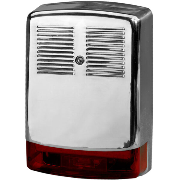 Aritech AS631V Außensirene: VdS-zertifizierte Hochleistungssirene mit 120 dB und rotem Blitzlicht, wetterfestem Stahlgehäuse (IP35) und zuverlässiger 13–14,2V DC Versorgung – ideal für professionelle Außenanwendungen.