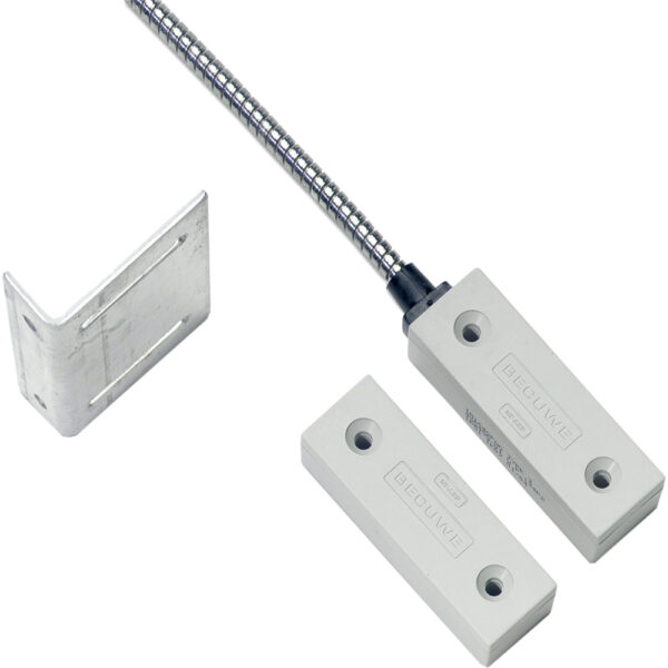 Aritech Magnetkontakt IM1640PAG: Verkabelter Reedkontakt mit 0,6 m Kabel und gepanzerter Anschlussleitung, weiß – die robuste Lösung für präzise Tür- & Fensterüberwachung in Einbruchmeldeanlagen.