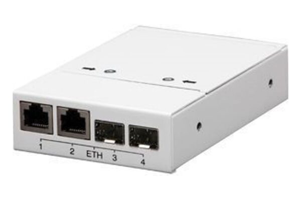 1. Vielseitige Konnektivität: Der AXIS T8607 bietet zwei 10/100Base-TX Ethernet-Ports und zwei SFP-Ports, die sowohl 100TX/FX als auch 1000T/SX oder LX unterstützen. Diese Flexibilität ermöglicht es, sowohl Kupfer- als auch Glasfaserverbindungen in einem einzigen Gerät zu nutzen, was die Netzwerkplanung erheblich vereinfacht.