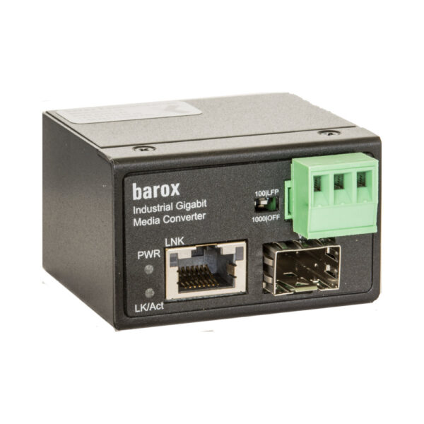 Barox PC-MC101-GE: Kompakter Gigabit Industrie‑Medienkonverter von SFP auf RJ45 mit erweitertem Temperaturbereich für stabile, performante Netzwerke in anspruchsvollen Umgebungen.