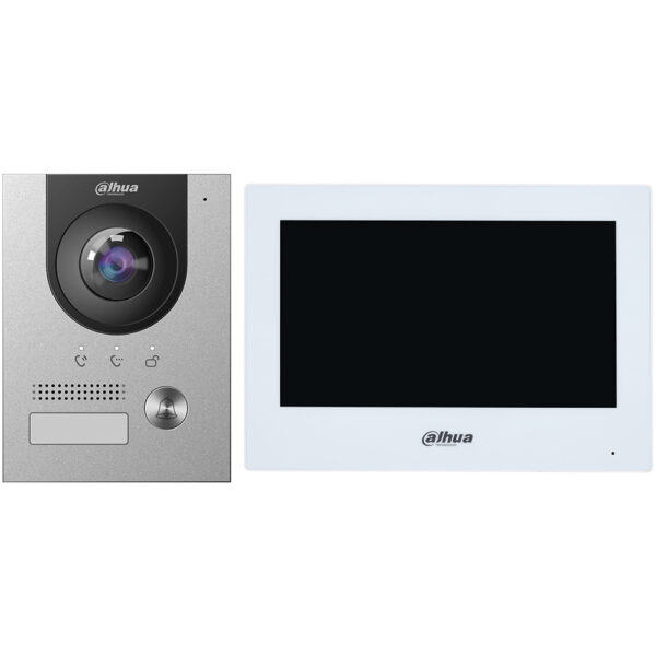Das Dahua 2-Draht-Videogegensprechanlage Set in elegantem Silber bietet fortschrittliche Sicherheit und Komfort für Ihr Zuhause oder Geschäft. Mit einem robusten Metallgehäuse und einem 7-Zoll-Touchscreen ermöglicht es eine reibungslose Kommunikation und zuverlässige Überwachung.