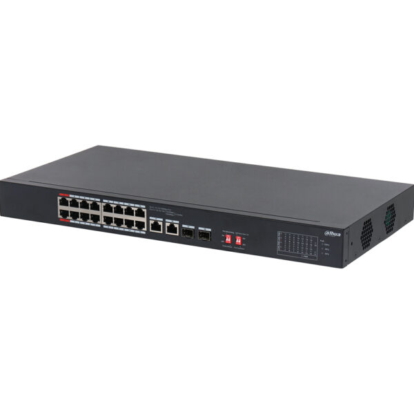 Dahua PoE-Switch 18-Port verbindet Leistungsstärke und Effizienz in einem kompakten Design, ideal für vielseitige Netzwerkumgebungen. Der hochwertige Metallaufbau sichert Langlebigkeit, während 16 PoE-Ports flexible Geräteverbindungen mit bis zu 250 Metern Distanz ermöglichen. Mit einem PoE-Budget von 240W sorgt der Switch für eine effiziente Stromverteilung, entscheidend für ressourcenschonende Netzwerke. Die Unterstützung einer Spannungsversorgung von 100 – 240V AC bietet breite Einsatzmöglichkeiten von kleinen bis mittleren Betrieben.