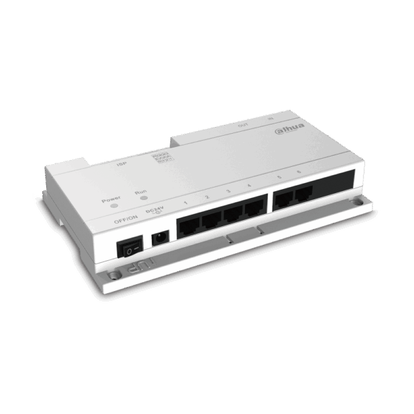 – Speziell für Dahua IP-Video-Türsprechanlagen entwickelt – im Gegensatz zu generischen PoE-Switches mit 48V IEEE-Standards liefert der DHI-VTNS1060A-A die intercom-typische 24V-Versorgung.