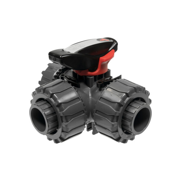 Drei-Wege-Design: Der MV 25 PVC SH ermöglicht eine flexible Steuerung des Durchflusses in drei Richtungen, was ihn ideal für komplexe Rohrleitungssysteme macht.