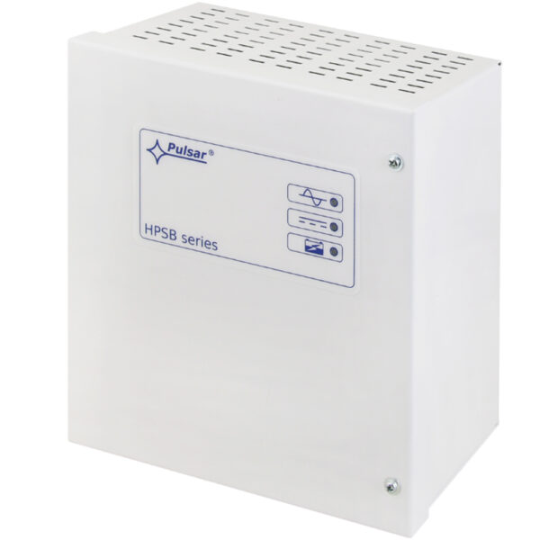 Pulsar HPSB-12V3A-B: Kompaktes Puffer-Schaltnetzteil mit 13,8 V DC für 12-V-Systeme, 48 W Leistung und zuverlässigem Metallgehäuse in Weiß – ideal für sichere, stabile Stromversorgung im Innenbereich.