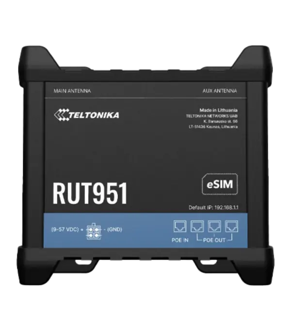 TELTONIKA RUT951 PoE+ 4G LTE Router – Industrieller IoT-Router mit Dual SIM/eSIM, 4x PoE+ Ports, Wi‑Fi, RutOS & VPN – Artikelnummer RUT951A10J00