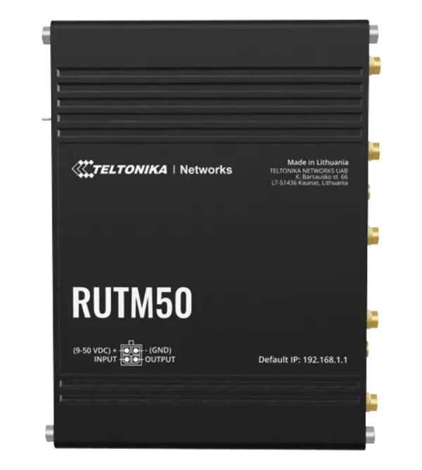 5G Router, Industrie Router, IoT Gateway, Dual‑SIM Router, Auto‑Failover, 5G SA/NSA, LTE Cat 19, LTE Cat 18, Teltonika RUTM50, RUTM50000000, FCC‑zertifiziert, industrieller 5G‑Router, Remote‑Management, M2M, Edge‑Konnektivität, Backup‑WAN, Gigabit‑Ethernet