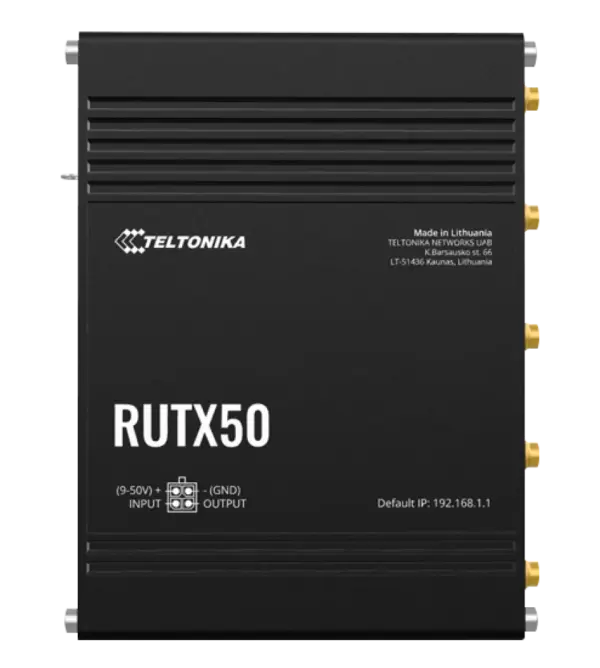 Der TELTONIKA RUTX50 ist die erste Wahl für Unternehmen, die eine leistungsstarke, sichere und ausfallsichere 5G‑Konnektivität benötigen – vom industriellen Schaltschrank bis zum mobilen Einsatz. Entscheiden Sie sich für zukunftssichere Netzwerke mit dem RUTX50 und bringen Sie Ihre digitale Infrastruktur auf 5G‑Niveau.