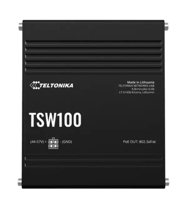 Industrial PoE Switch, Unmanaged PoE Switch, Gigabit PoE+, PSE, IEEE 802.3af/at, Industrieller Ethernet Switch, DIN-Schienen-Switch, IP-Kamera PoE, Access Point PoE, Smart City Netzwerk, Industrieautomation, TELTONIKA TSW100