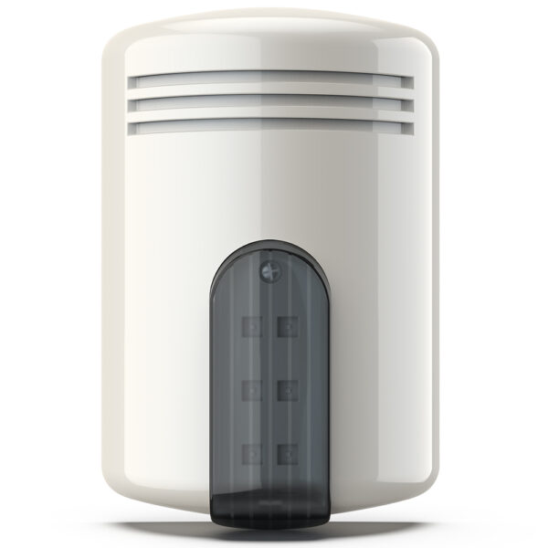 – Design trifft Robustheit: Zeitloses Weiß fügt sich unauffällig in Fassade und Interieur ein, das graue Blitzlicht sorgt im Alarmfall für klare Wahrnehmung.