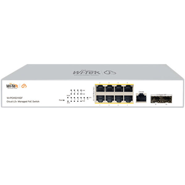 WirelessTek WI-PCMS310GF V2: Cloud-gemanagter 10-Port PoE Switch mit 140W Budget, 2x SFP und flexibler Desktop/Rack-Montage – verlässliche Performance für Kameras, Access Points und VoIP
